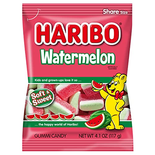 HARIBO Gummi Candy, Watermelon Gummy Candy Introducing HARIBO Watermelon, fresh from the gummi garden! With three vibrant layers of color and refreshing watermelon flavor, these gummies are as fun to look at as they are to eat. Soft and juicy, they transport your taste buds back to sunny summer days with every bite, creating a truly mouthwatering experience. Their soft, chewy texture makes them irresistible and adds an extra element of delight to every piece. These sweet treats, with just 100 calories per serving, are great for sharing, snacking, or adding a fun twist to your desserts and party candy favors. From a small sweets company to a global market leader, the HARIBO brand started as a humble home kitchen. Over the past 100 years we have grown to a successful family business. Kids and grown-ups love it so, the happy world of HARIBO!